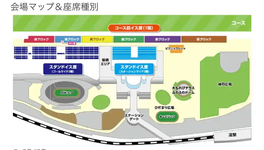 公開されている席種を見ると、スタンド席、コース前イス席、ピクニックシート席、
